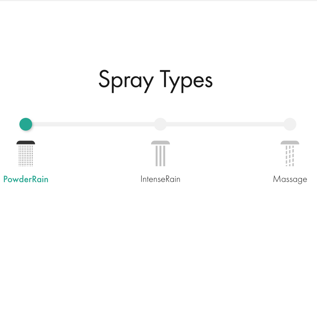 - PowderRain, IntenseRain, Massage spray settings: Enjoy versatile water experiences with PowderRain, IntenseRain, Massage spray modes